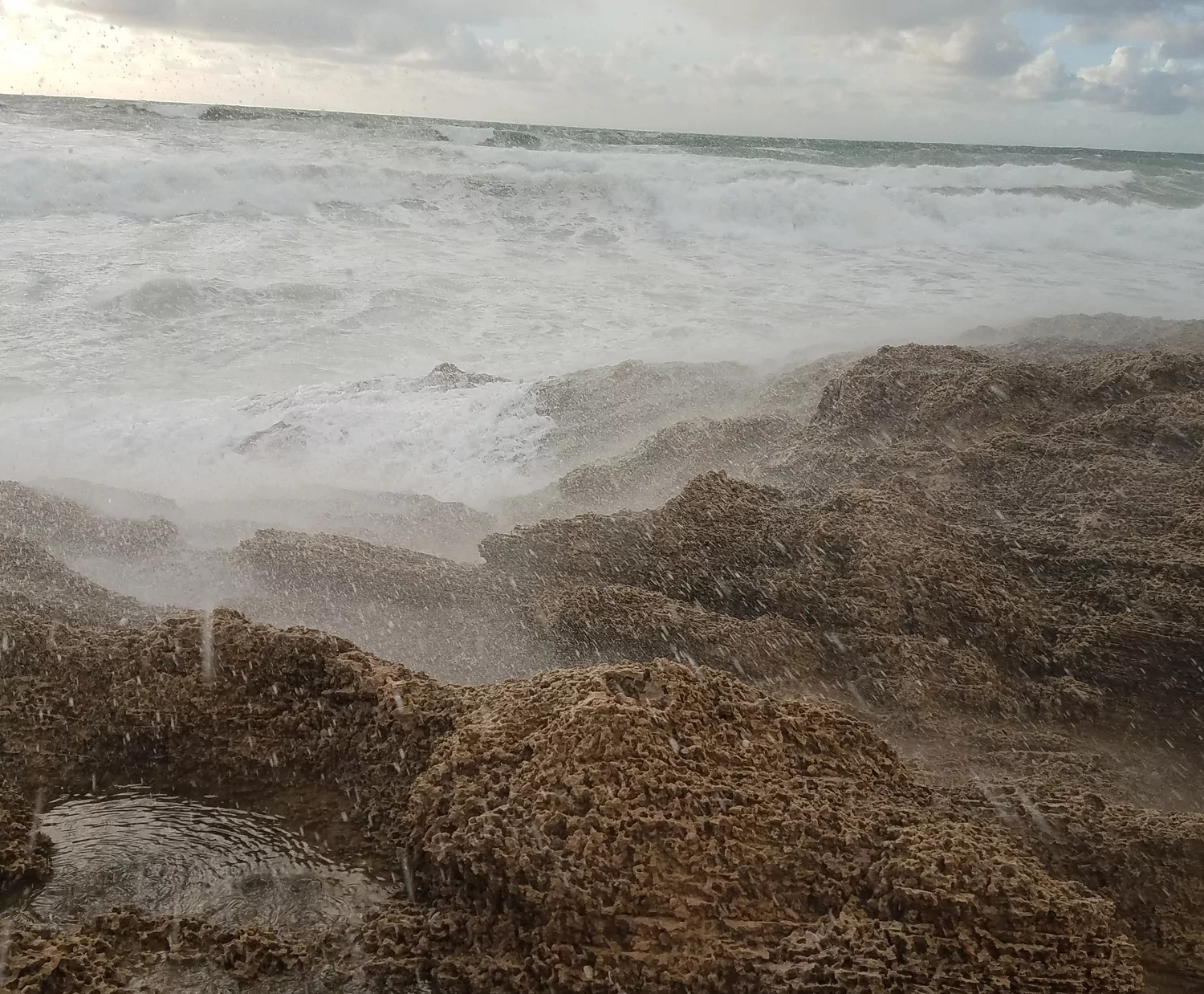 - גלים לא גבוהים כי יש רוח 60 קמ"ש +- שונטי