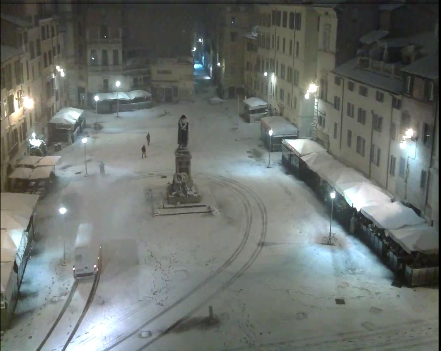 רומא מושלגת כבר כמה שעות והשלגים אף נערמו בעיר. הטמפ' בעיר כעת עומדת על 0 מעלות.