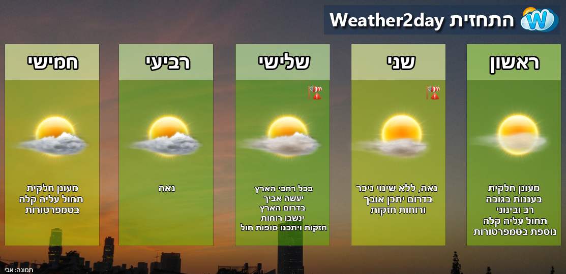 - תשקיף מזג האוויר לשבוע הקרוב - ראשון עד חמישי Weather2day