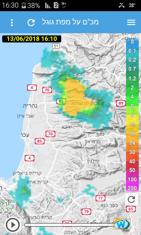 - מכם גשם עדכני: גשם חזק באזור הגליל המערבי וגשמים ברמת הגולן. מירן-נחלת יצחק