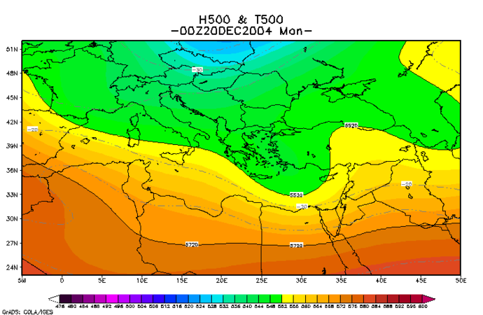 H500 - גובה מפלס 500 mbar