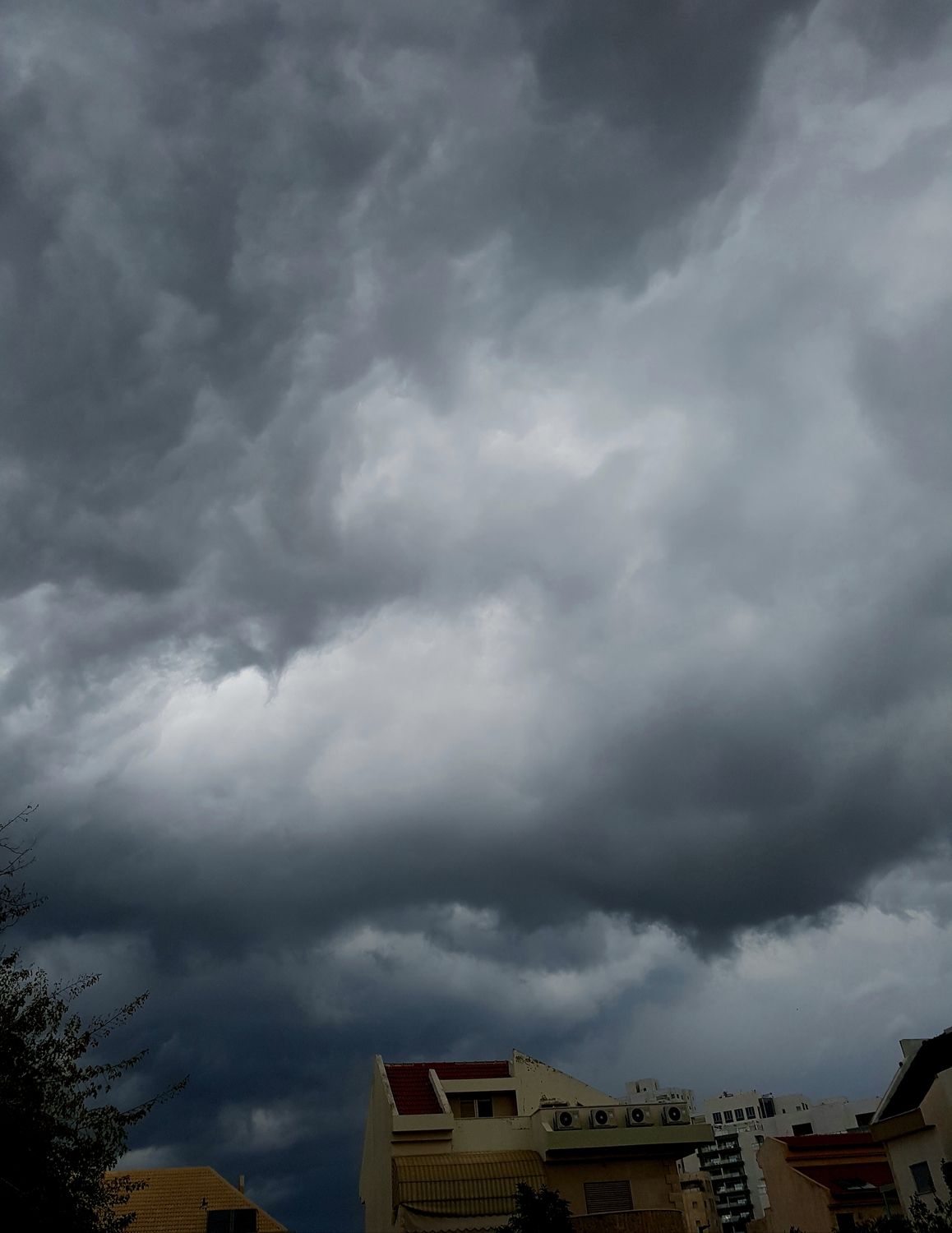 - עננים שחורים נפתחים מעל נצרת ושמעתי רעם לפני כמה דקות בשארה