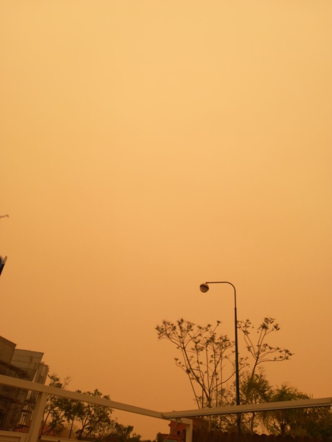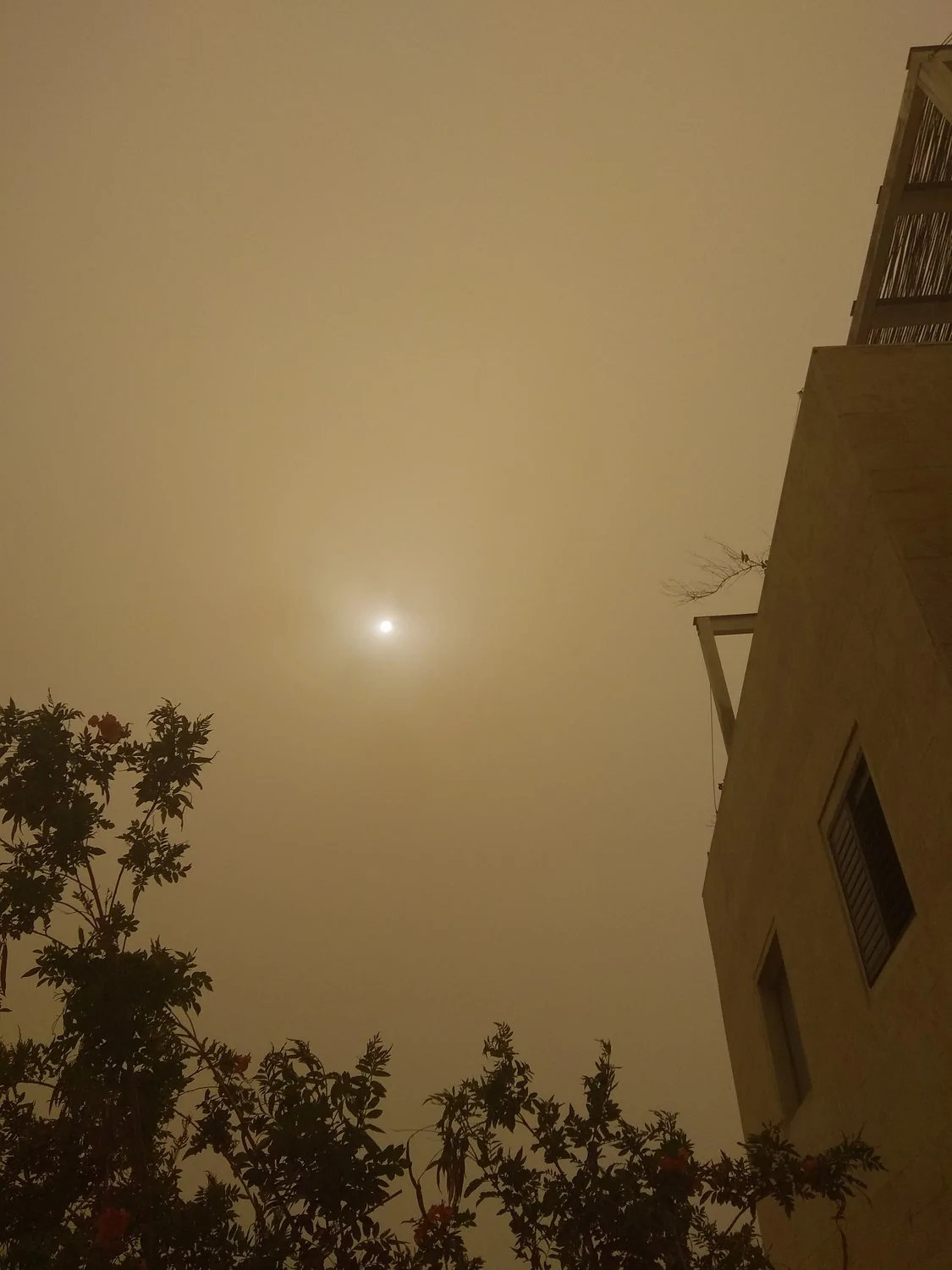 פתאום עלה לשמים. לפני כשעה היה מעונן חלקית בעננות בינונית, כעת האופק הדרום מזרחי נעשה כתום/חום ומתפשט בהדרגה לצפון.