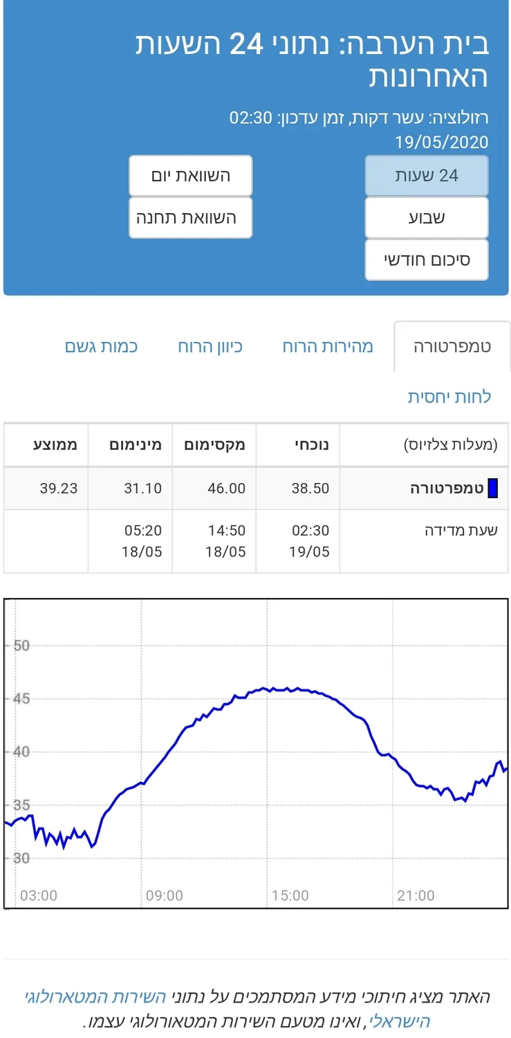 - הטמפ' בבית הערבה ב-30 הימים האחרונים חנוך א