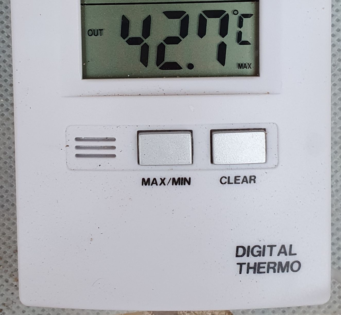 כעת רק 20° עם 80% לחות, אני עדיין בהלם מהצניחה הזו, לקראת עוד יום לוהט וקשוח מחר (שזה כבר היום) שצפוי להיות שיא גל החום, מעניין יהיה לראות האם נגיע ונחצה את ה-42° שזה, למיטב זכרוני השיא פה, אם אני טועה אשמח לתיקון דבריי