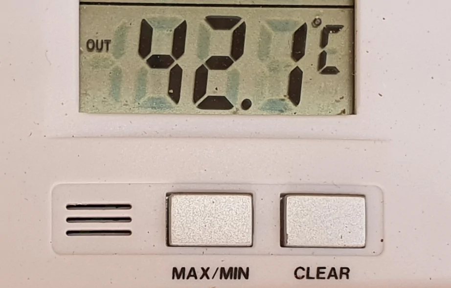 - טמפרטורת המקסימום של היום כפי שנראתה במד החדש: אבי (פרדס כץ)