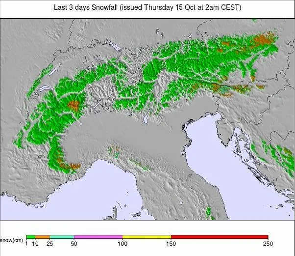 יורד כרגע שלג בהרי איטליה בגובה של מעל לאלפיים מטר (אלפיים ככל הנראה) לא רחוק מהגבול עם השוויץ ואוסטריה