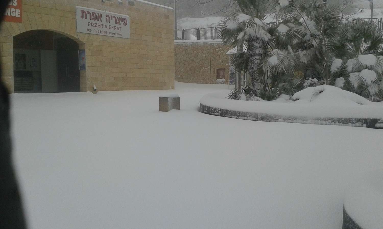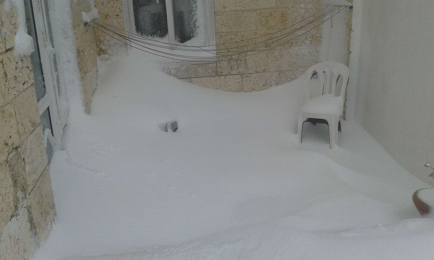 - מלא שלג ליד הקיר השלג מגיע למטר אפריים