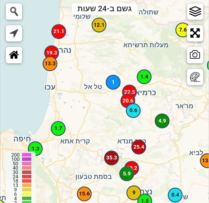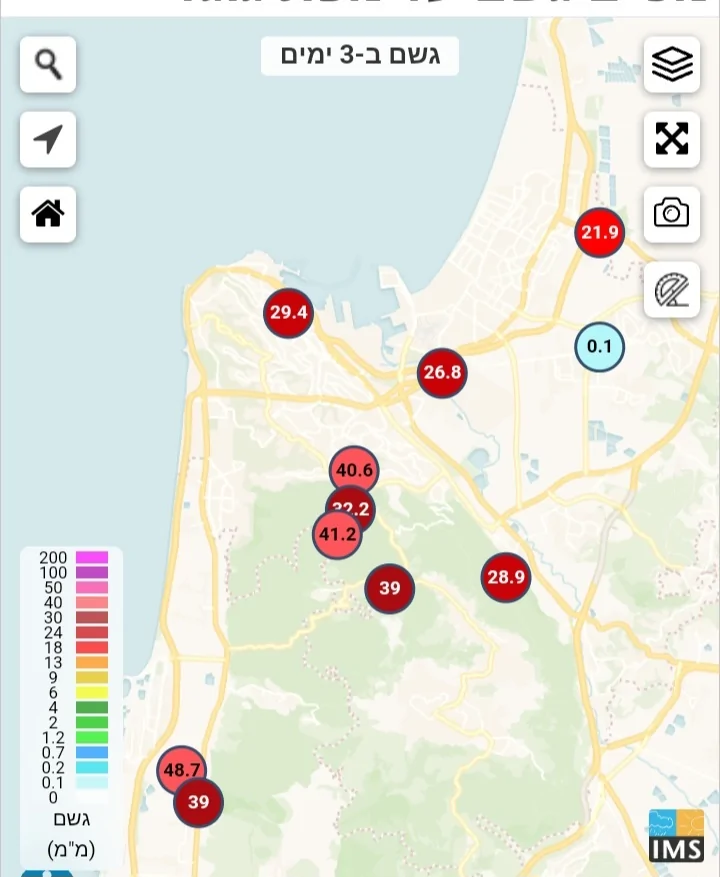 - הגשם נסע דוך מזכרון עד נהלל עם 40 ממ ביקנעם עילית חנוך א