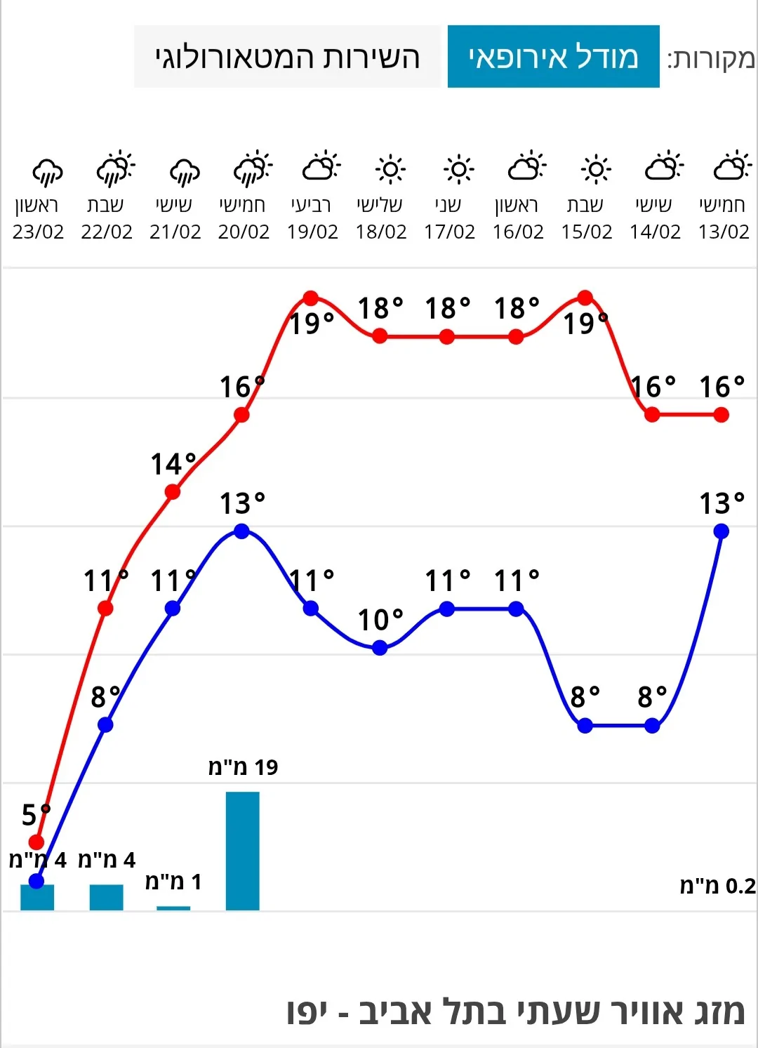 אמנה אחד מהם, האירופאי נותן לנו מינוס 1 בקרית שמונה, ואפס מעלות בצפת