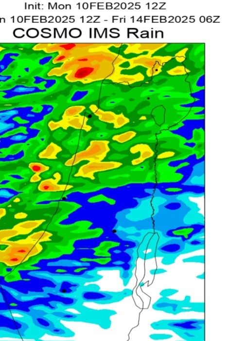 "מכות" גשם עצומות ומיעוט של ס"ה ימי גשם.. לפחות עד מערכת הנוכחית שהיא מתונה וארוכת ימים... פברואר נראה בנתיים כחודש בעל היקף ימי גשם נרחב ואולי אף כמוחות גשם מעל לממוצע החודשי... מצב זה אולי יבטל את החשש של מיעוט ימי גשם ותרחיש של בצורת.... אני מאמין/מקווה שחודש מרץ יהיה גם חריג מבחינת כמות ימי הגשם והכמות הכוללת של מ"מ
