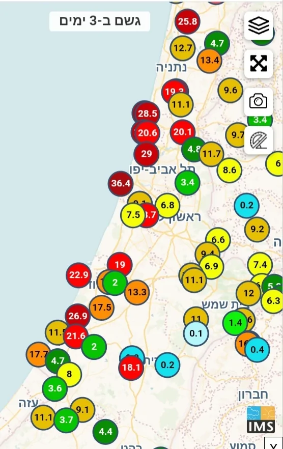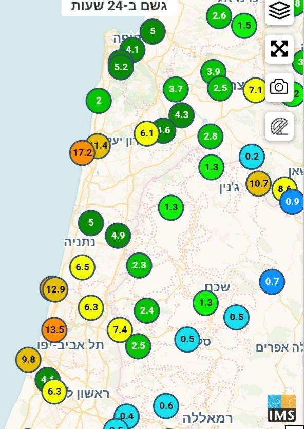 - עוד גשם חזק היה בדקות האחרונות. 11 ממ ליממה, 54 לפברואר איתן