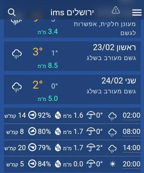 דרך אגב איסי עם שיפור ניכר אבל נראה לי יש לו באג בתחזית השלג למה הוא נראה עם שלג מקומות לא הגיוניים. ויש עוד כמה בעיות כמו כניסה מאוחרת של הקור
