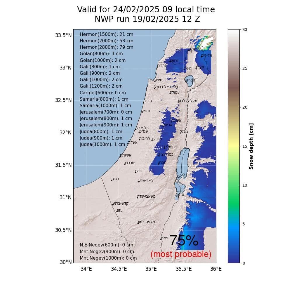 למרות כל הבאסה וה״פספוס״ אנחנו בדרך לארוע נדיר. שלג בירושלים הוא לא דבר שקורה כל שנה ולא כל שנתיים כמו שראינו. אבל זה אפילו לא החלק העיקרי. הקור ב850 הוא קיצוני ובהסתכלות נראה יותר טוב מ18 בינואר 2022(5.4 מע׳ בת״א) אחד הבקרים הקרים שזכורים לי. השמ״ט נותן 2 מע׳ בתל אביב בשלישי בוקר! זה משהו שלא יודע מתי קרה פעם אחרונה. ירושלים עם 3 ימים רצופים של 0 מע׳ בבקרים זה גם נדיר! ושלא נדבר על הצפון…