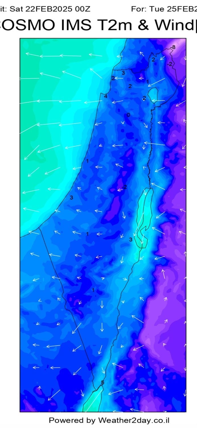 - קוסמו צופה ביום שלישי לפנות בוקר מינוס 2 בירושלים, בין מעלה ל4 בחוף אין שם