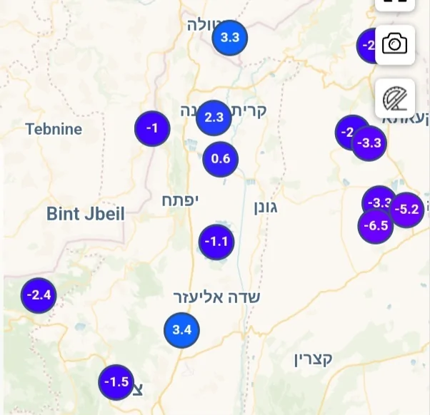 - הטמפרטורות באזור אצבע הגליל צנחו ככל הנראה גם שם יורד שלג איתן