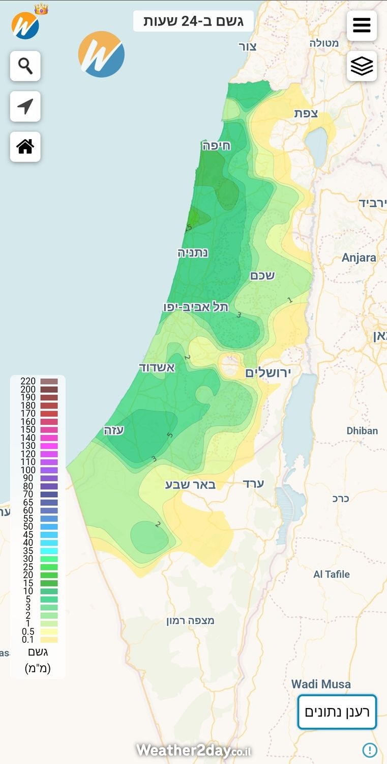 כמויות משקעים למערכת הקצרה בשבת 01.03.2025