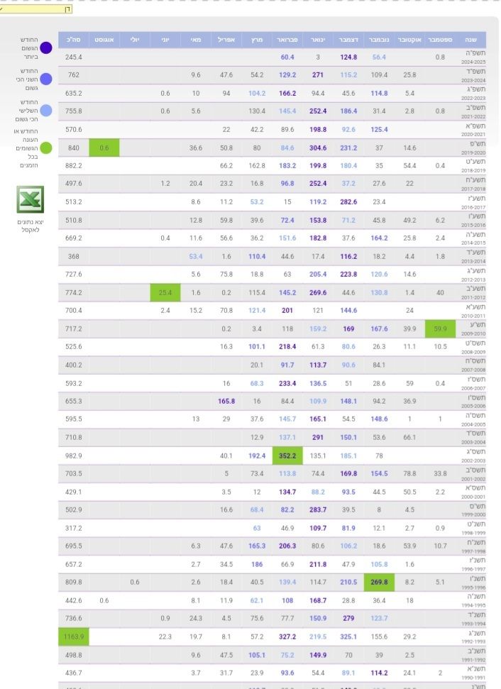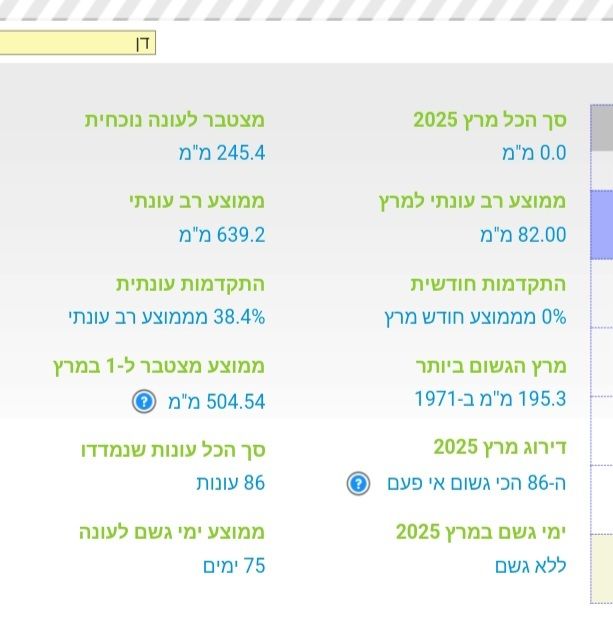 בחודש פברואר ירדו כ 67 מ"מ שהם כ 54% מהממוצע הרב חודשי, סך הכל לעונה 24/25 ירדו בבית הלל כ 237.5 מ"מ שהם כ 39% מהממוצע הרב עונתי. המצב רע מאוד, עוד לא הגענו לחצי מהממוצע ועם המצב יישאר כך עונת הגשמים הזו הולכת להיות השחונה ביותר מאז שנת 1991 ואולי בכלל. משנת 1991 התחלתי למדוד גשם.