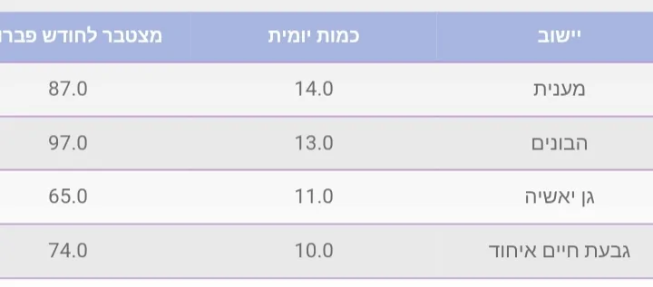 - הרדוף 1.6 מ"מ ליממה. 69.6 מ"מ לחודש. 334.4 מ"מ לעונה. ארנון דובדבני