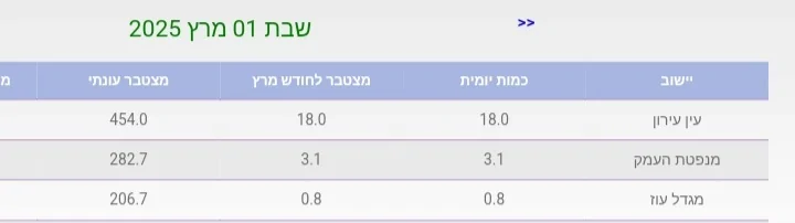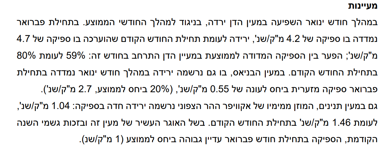 - הספיקה של הדן הייתה 59% מהממוצע בתחילת פברואר 2025! משה מזכירות יגור