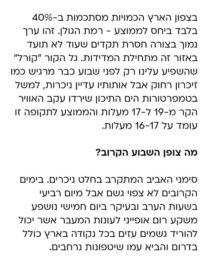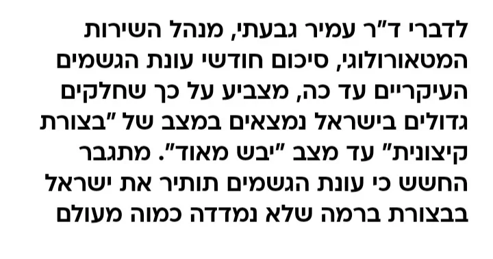 - חדרה ונתניה הגיעו ל-400 ממ, זכרון יעקב ל-500 ממ חנוך א