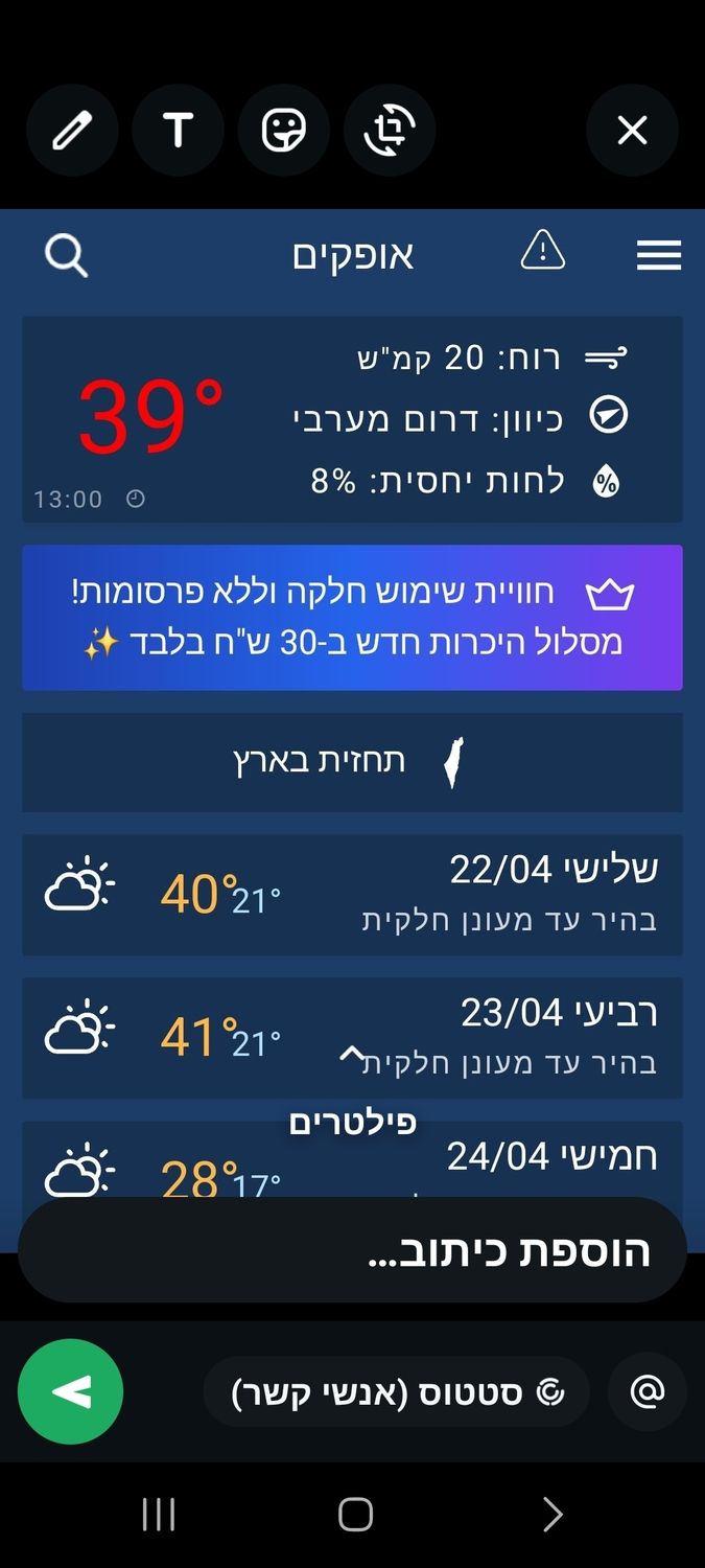 - דיווחי מזג אוויר - יום שלישי 22/04/2025 נעם