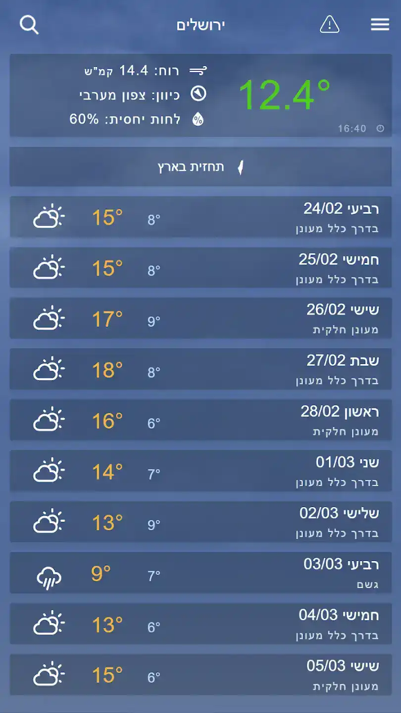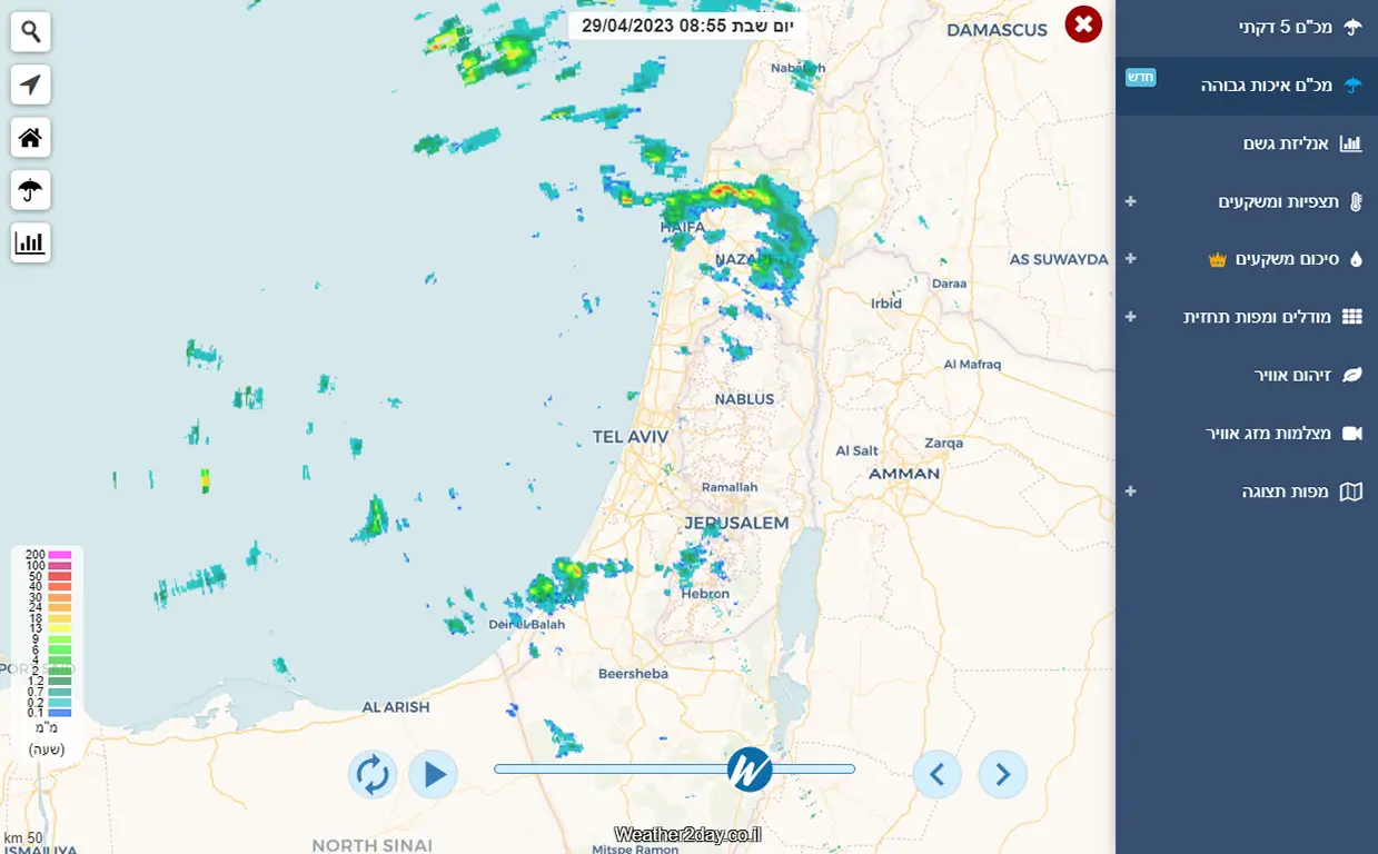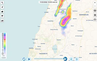 מפה אינטראקטיבית של מזג האוויר הכוללת מכ"ם גשם מדויק ומשופר, מפות גשם, התראות בזמן אמת ומעקב עדכני אחר נתוני מזג האוויר. גם באפליקציה: לאנדרואיד או לאייפון.