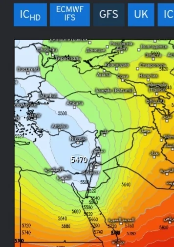 שמחים לעדכן כי לראשונה בישראל, תוכלו לצפות במפות התחזית של מודל ECMWF בשלל פרמטרים: תחזית משקעים, טמפרטורה בקרקע ובמפלסי הרום השונים (כ־1500 מ', 3000 מ' ו־5000 מ'), צפי שלג ועוד.