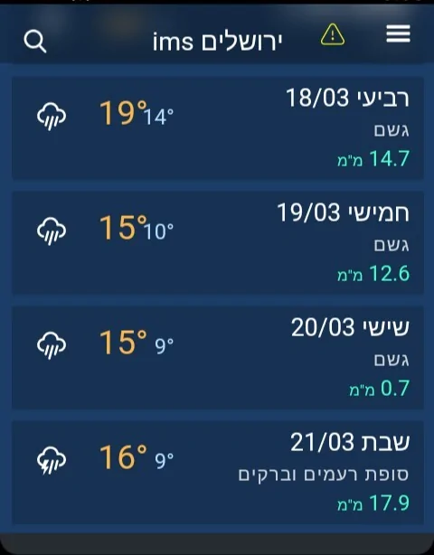 באפליקציה בוחרים בתפריט מכ"ם גשם > לוחצים על תפריט השכבות > מודלים ומפות תחזית > ואז בוחרים פרמטר, למשל משקעים (עיינו בתמונה השלישית המצורפת כאן)