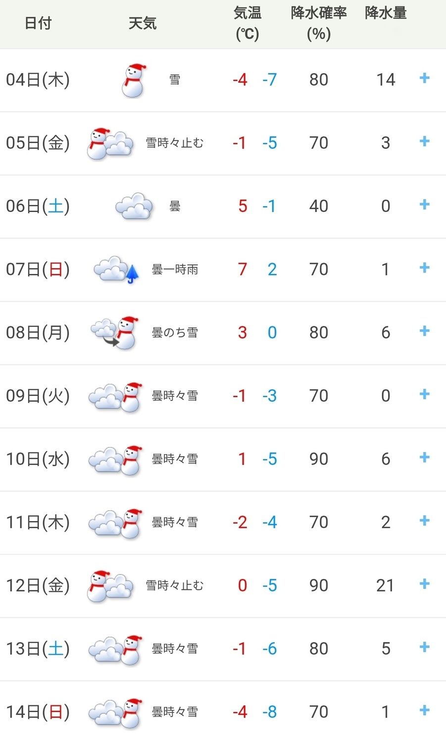 בתמונה הראשונה ניתן לראות את התחזית לעיירה קוצ'אן שנמצאת במרחק של 50 ק"מ מסאפורו הבירה. שלג כמעט כל יום (אם כי עדיין לא מדובר בטמפ' של שיא החורף), מימין זה הכמויות בס"מ. מדהים.
