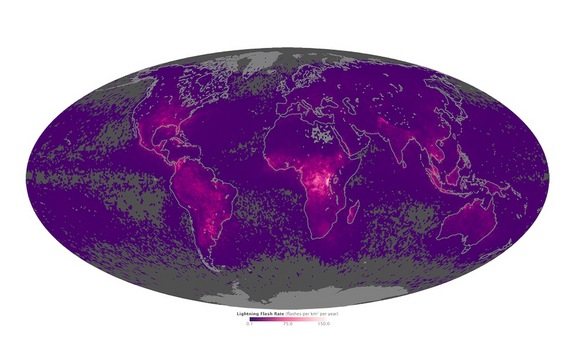 מפה חדשה מציגה את מכות הברק שפגעו בכדור במהלך שני העשורים האחרונים.