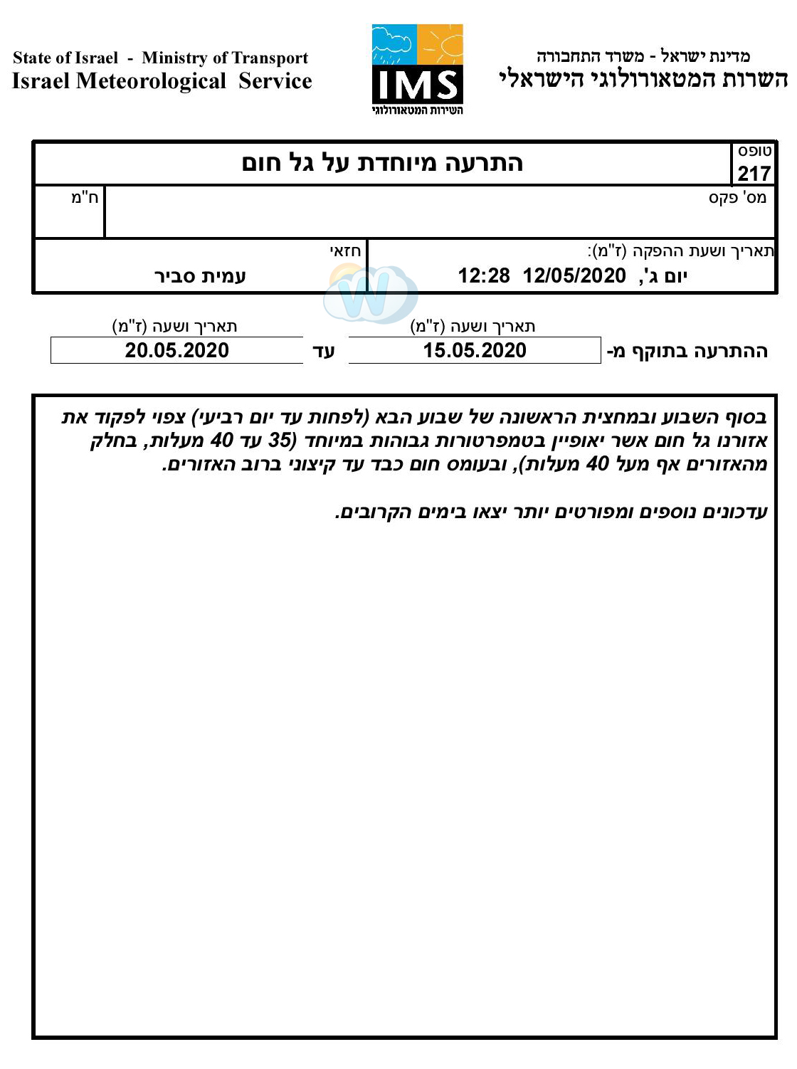 השירות המטאורולוגי הוציא התראה מיוחדת לאירוע לפני זמן קצר: