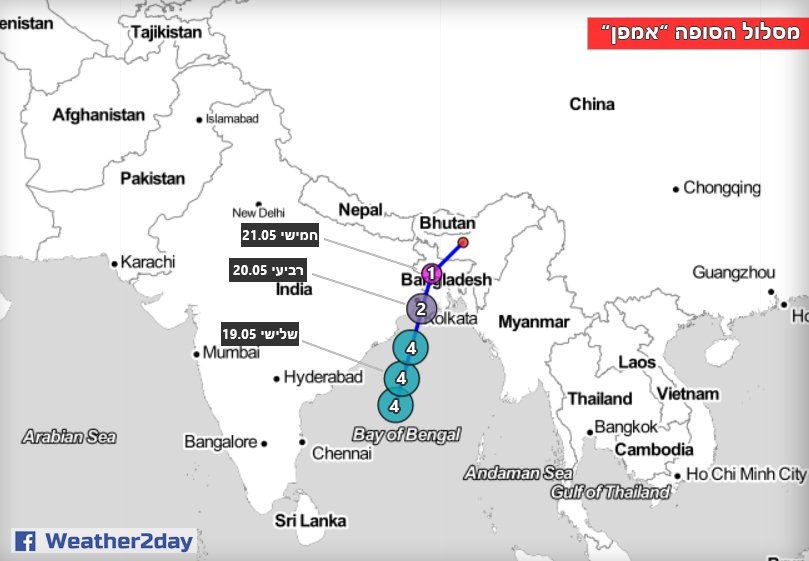 מסלול הסופה "אמפן" / Tropical Cyclone Amphan Track