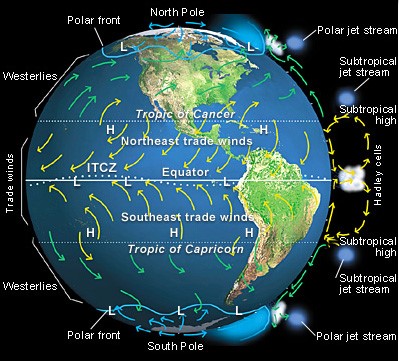 בחצי הכדור הצפוני מפגש מסות אוויר אלו יוצר סופות ציקלון אשר אחראיות למשקעים בצפון-מערב האוקיינוס השקט ובאירופה, ובחצי הכדור הדרומי מתפתחות סופות חמורות, רוחות חזקות נושבות ושלג יורד באנטארקטיקה.