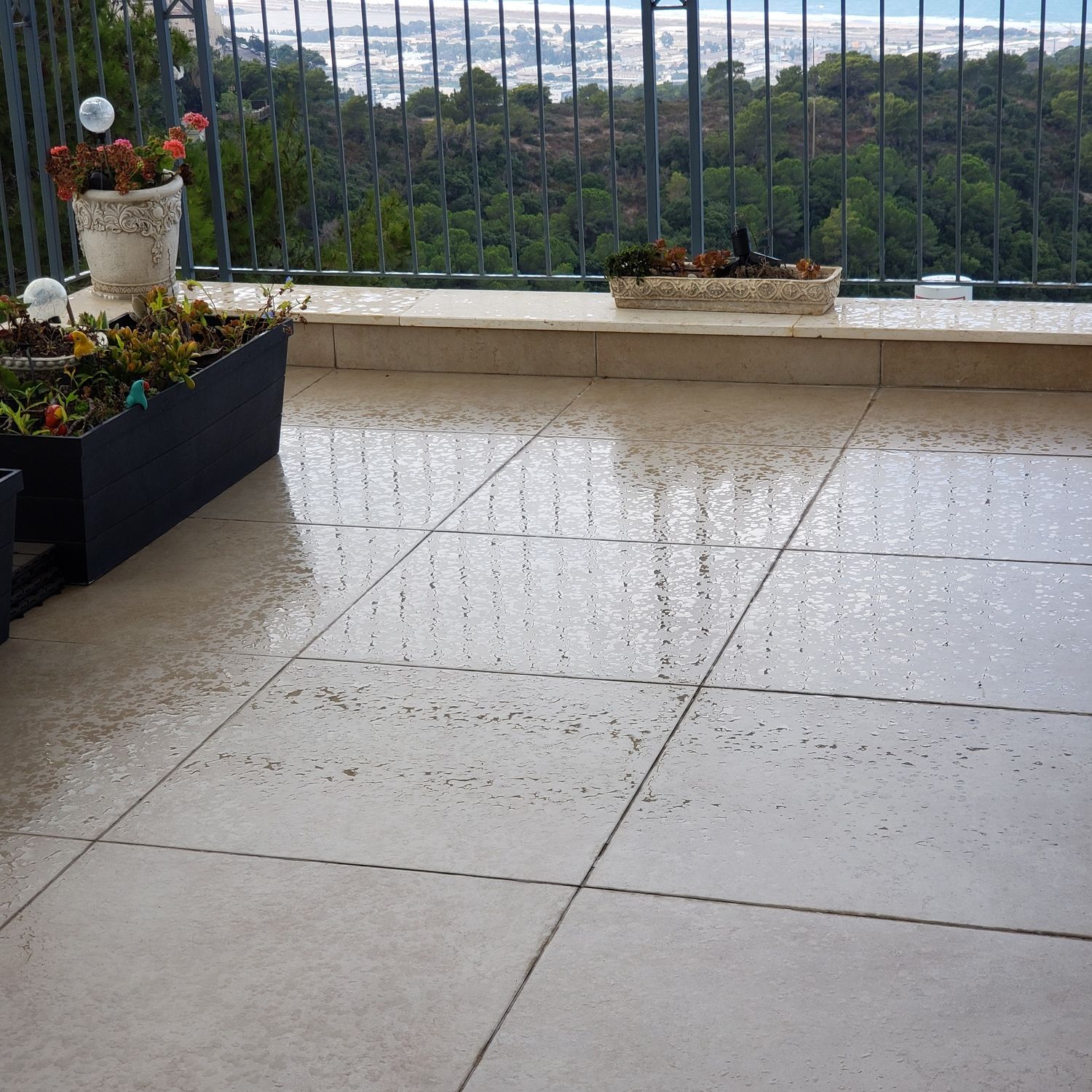 מרפסת רטובה לאחר הגשם בחיפה. צילום: טל ומטר