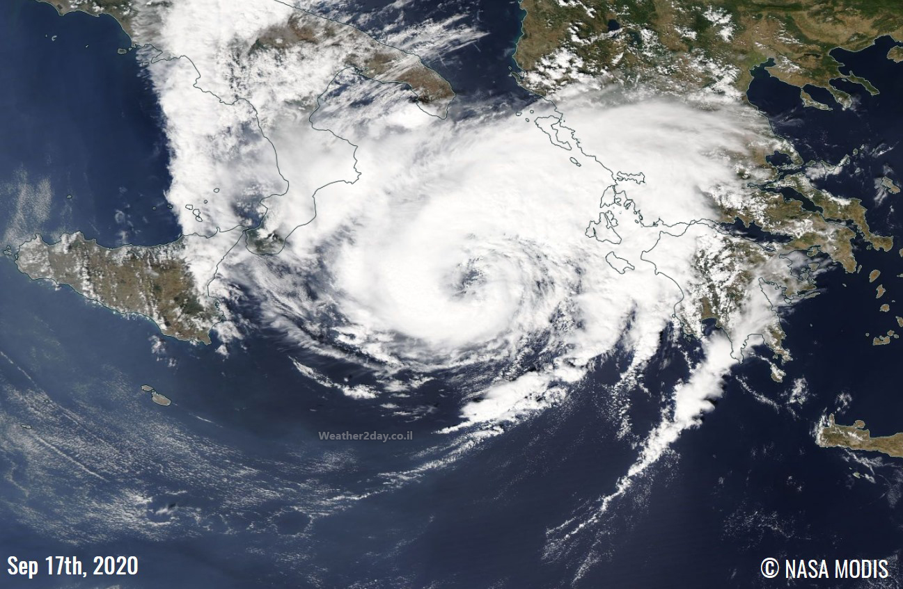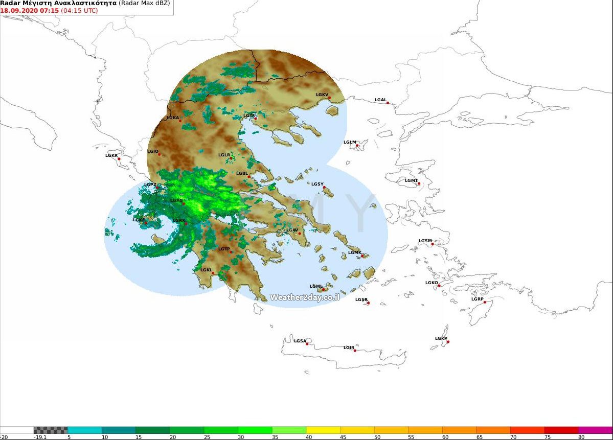 עדכון 18.09.2020 07:50 מכ"ם הגשם היווני הבוקר מראה כי הסופה מכה במלוא עוצמתה וחלקה הפעיל יותר נמצא בקדמתה בחלקה הצפון מזרחי.