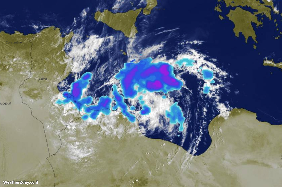 תמונת לווין 15.9 12:30 בשילוב משקעים