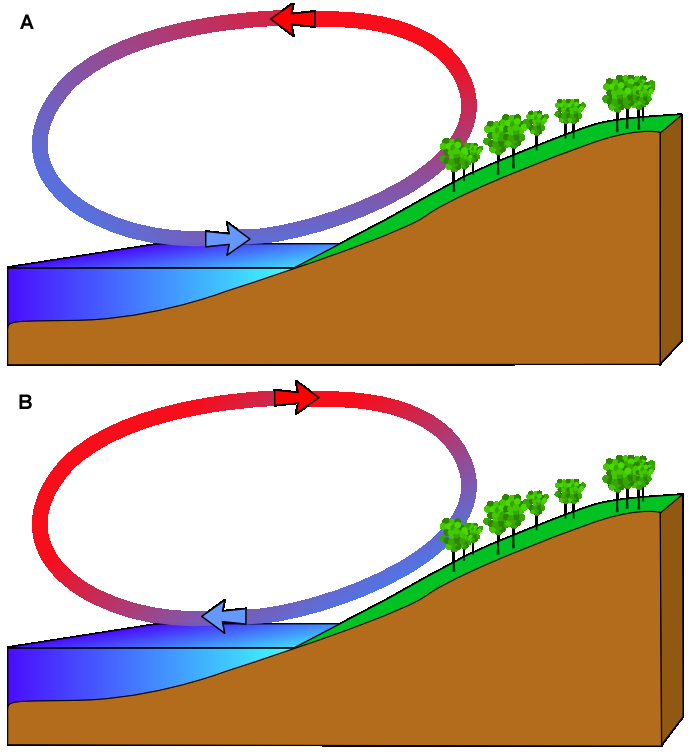 לכאורה נשיבת הרוח ממקום לחץ גבוה לנמוך אמורה לאזן את הלחצים אבל בגלל כוח הקוריוליס הרוח לא נושבת בכיוון גראדיאנט הלחץ אלא בניצב לו ובמקביל לאיזוברים מה שגורם לרוח לנשוב מסביב לשקעים הברומטרים (איזורי לחץ נמוך - T) ולרמות הברומטריות (איזורי לחץ גבוה - H).