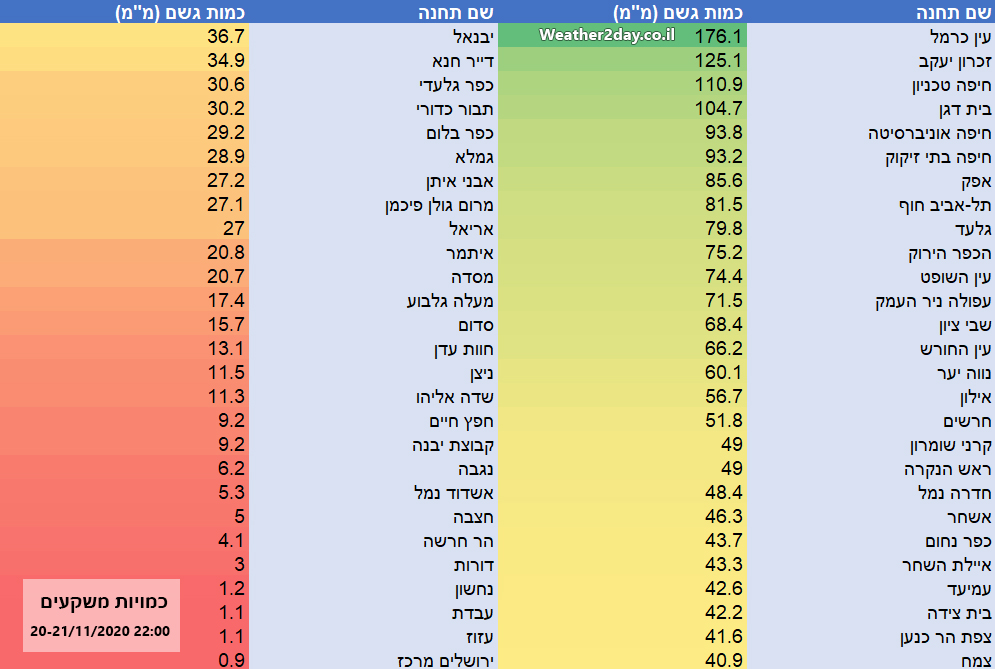 סיכום משקעים תחנות השירות המטאורולוגי בלבד: