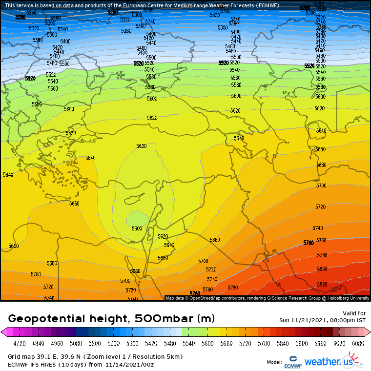 מפת הרום החזויה, 500 מיליבר