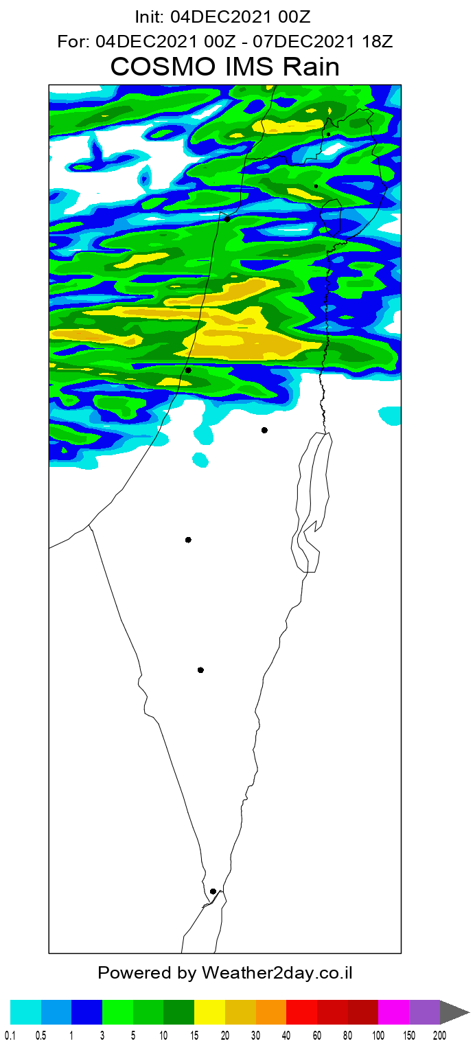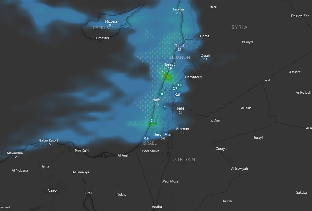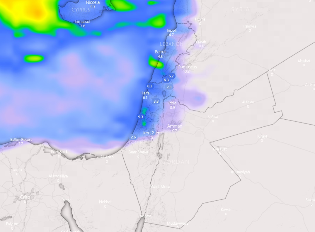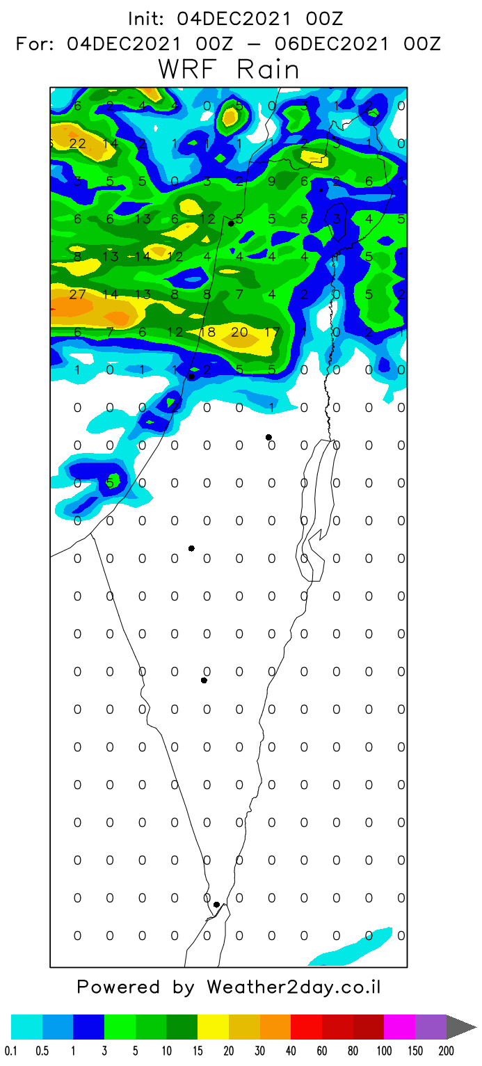 ביום רביעי נתחיל את הבוקר עם רוחות דרום מערביות שיתגברו במהלך היום כאשר באיזור קו החוף ובמערב הנגב יינשבו משבי הרוח החזקים ביותר. בחוף מדובר על רוחות שיחצו את ה-70 קמ"ש. רוחות אלו ימנעו מהגשם להיכנס בצורה חלקה ליבשה בשעות הבוקר ולכן הגשם יחל קודם כל בצפון הארץ ובמישור החוף הצפוני. באיזור המרכז והחוף המרכז גשמים מדי פעם כאשר עיקרם יחל רק בלילה לפרק זמן של מספר שעות בודדות. חשוב להדגיש כי קו חיתוך המשקעים לפי שעה הוא באיזור אשדוד כאשר הגשם יכול לדלג על איזורים רבים בעקבות הרוחות ואופי הפעילות. הגשם צפוי להיחלש בהדרגה במהלך יום חמישי. מפות יפורסמו במהלך השבוע.