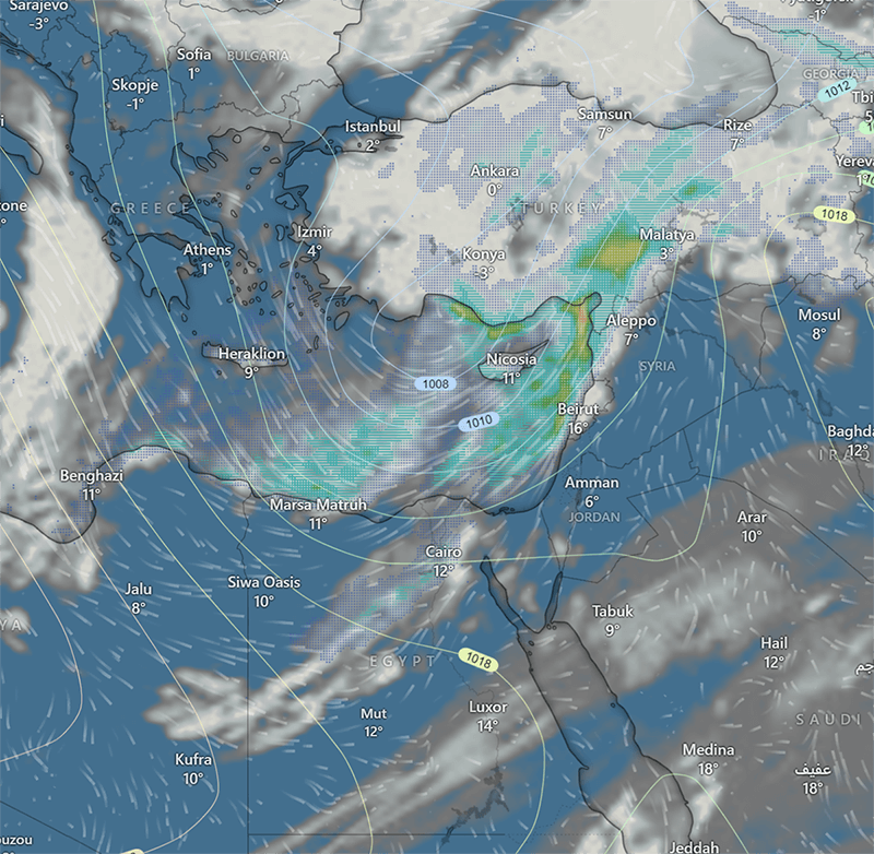 תמונת מצב סינופטית לקראת הגעתה של הסערה