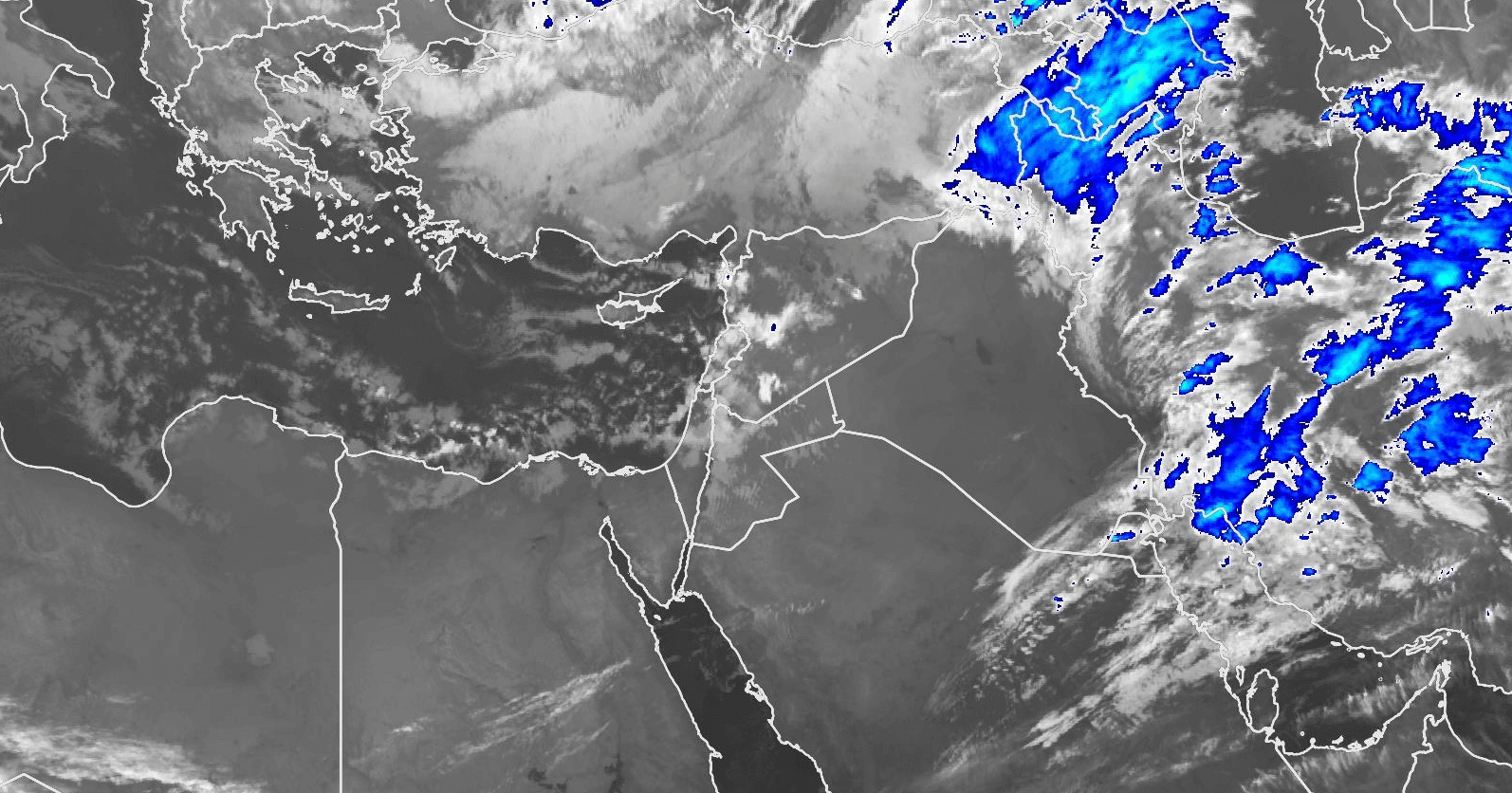 תמונת לווין. חזית גשם נכנסת למישור החוף הצפוני.