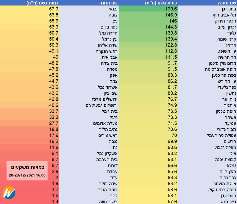 דיווחי מזג אוויר, יום רביעי 22/12/2021 | שרשור #1, שרשור #2