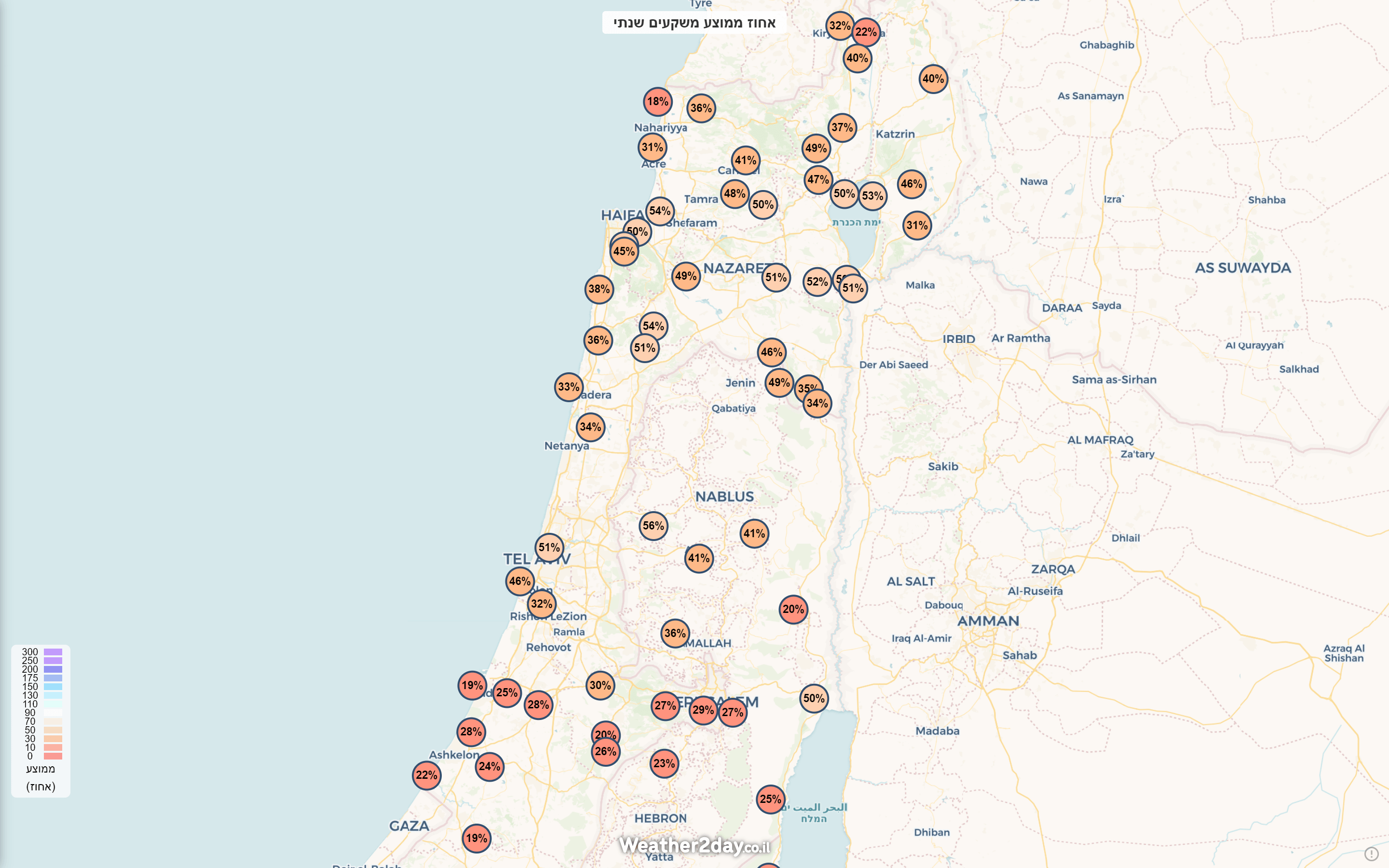 בשומרון ירדו 70 עד 120 מ"מ ובאזור השרון וגוש דן 50 עד 90 מ"מ