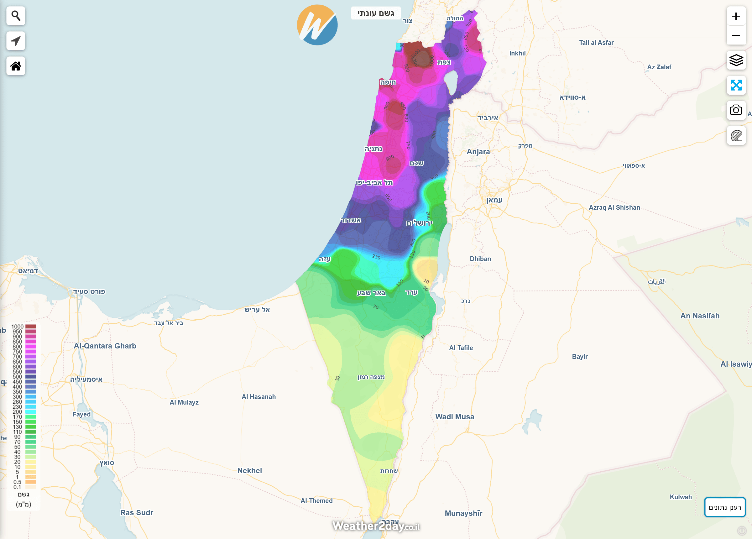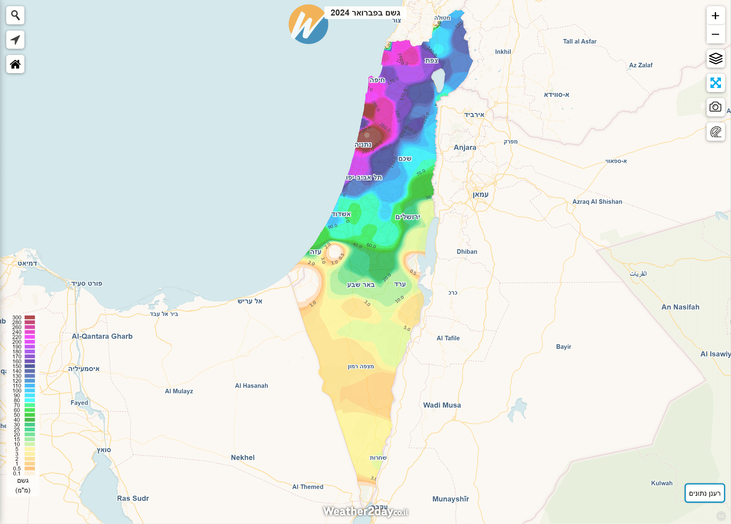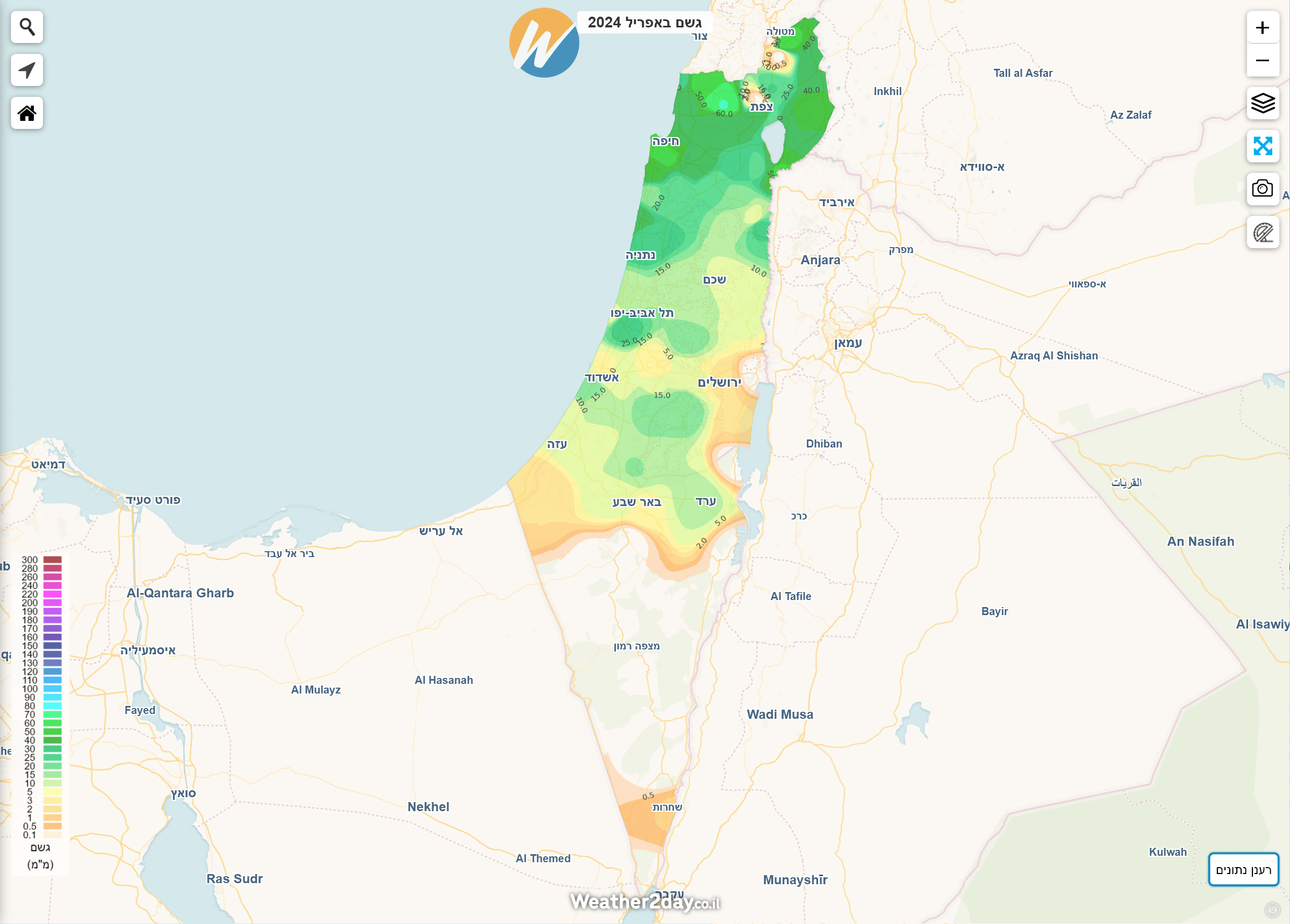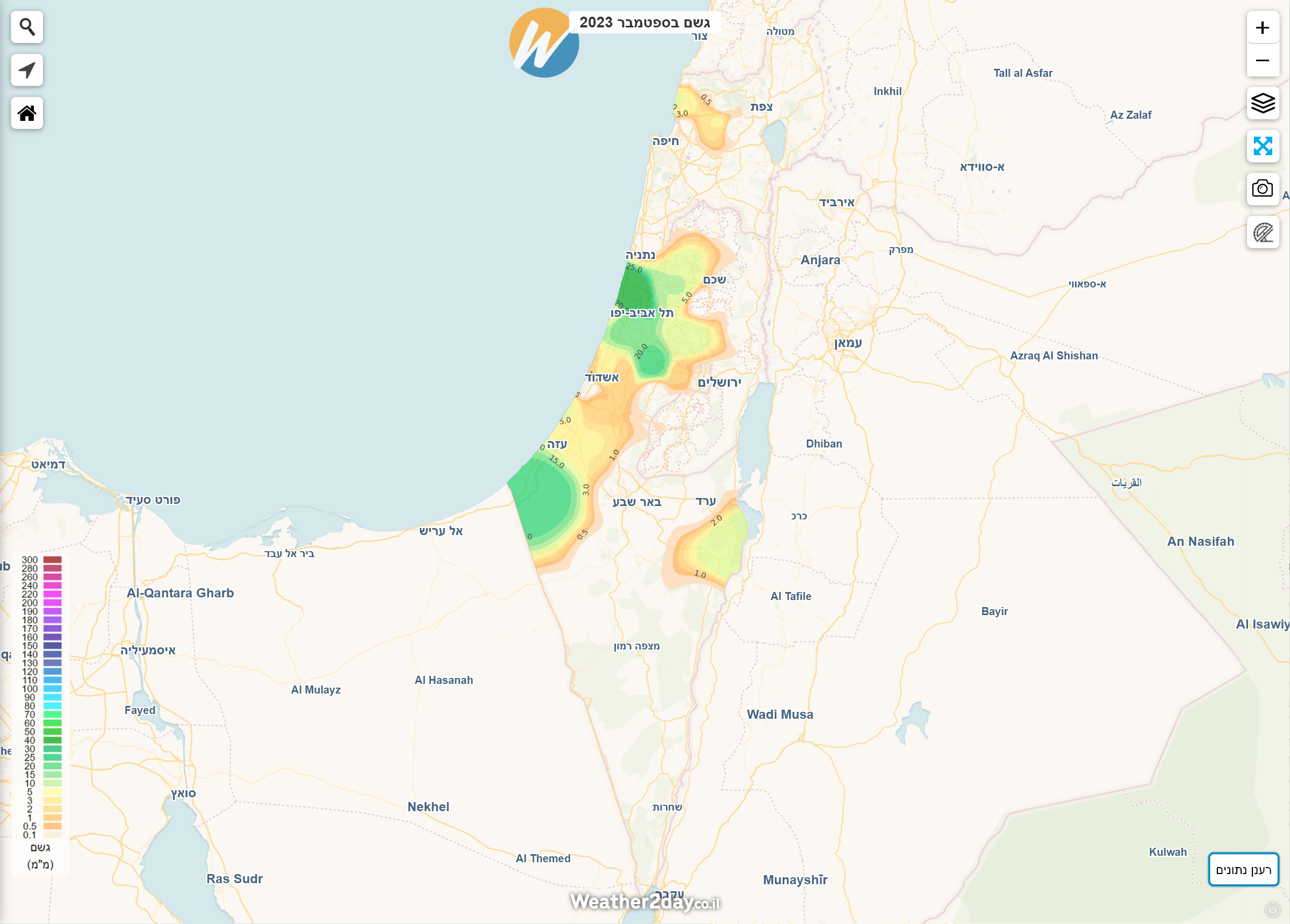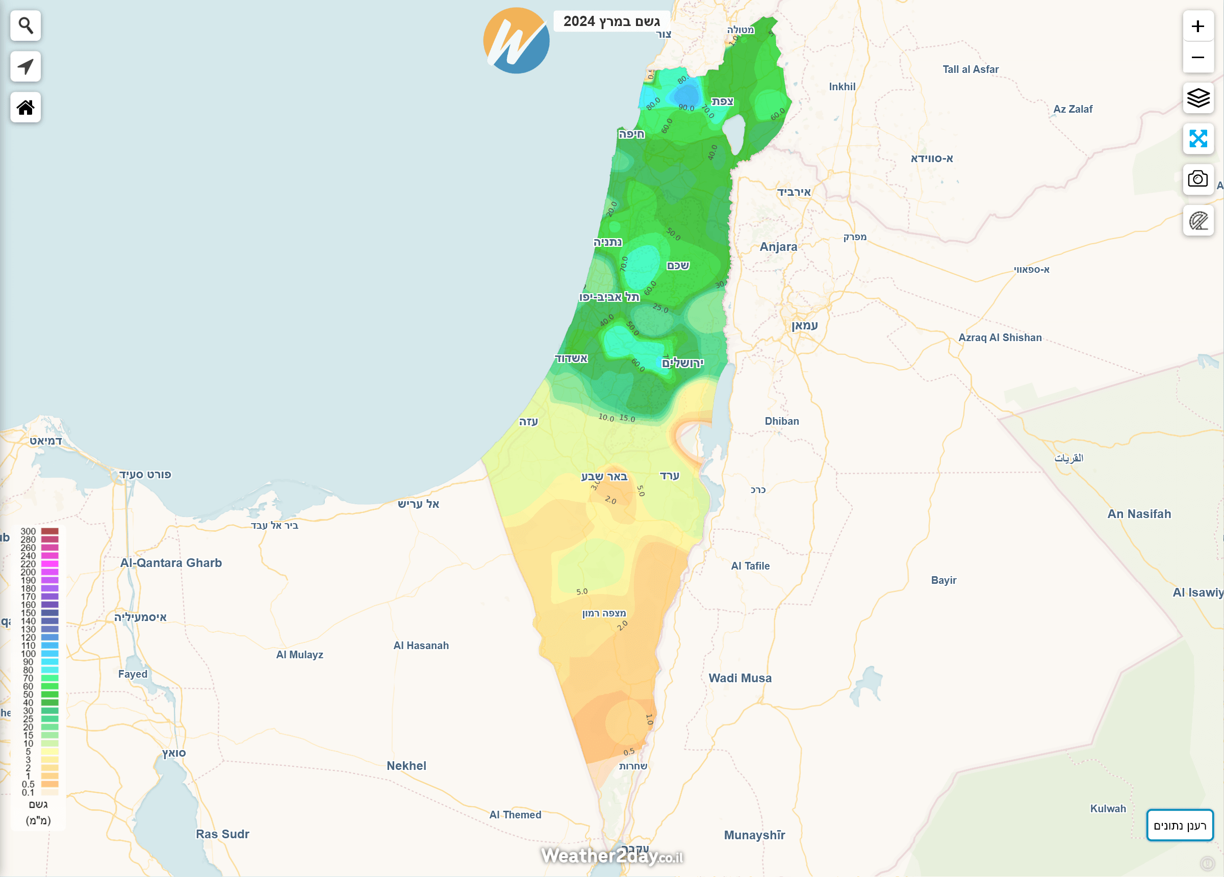 הסיכום הבא משלב נתונים מרכזיים לפי חודש יחד עם מפות חום המציגות את כמויות המשקעים בצורה נוחה יותר על גבי מפה. ניתן לגשת למפות אלו באמצעות מנוי פרימיום דרך תפריט מכם הגשם על מפת מזג האוויר של האתר. בעקבות המלחמה, חלק מנתוני התחנות בצפון הארץ וביישובי העוטף לא מדדו נתוני מזג אוויר במלואם. היות והאלגוריתם הייחודי שבנינו לא "מעגל פינות" ייתכנו חורים בתצוגה באזורים בהם חסרים או לא נמדדו משקעים למרות שבפועל ירד. נקווה שבעונה הבאה כל התחנות יחזרו לפעול במלואן.