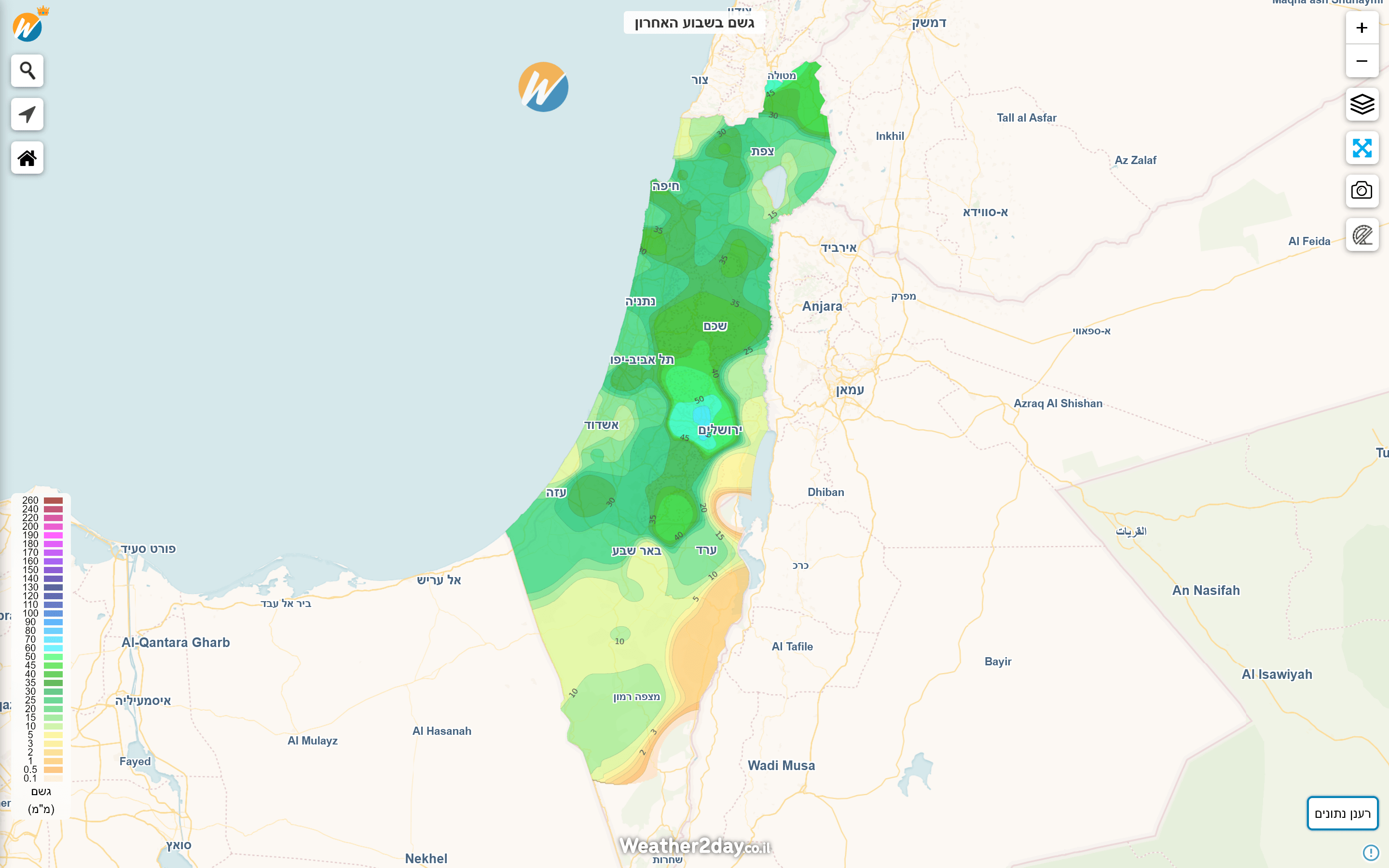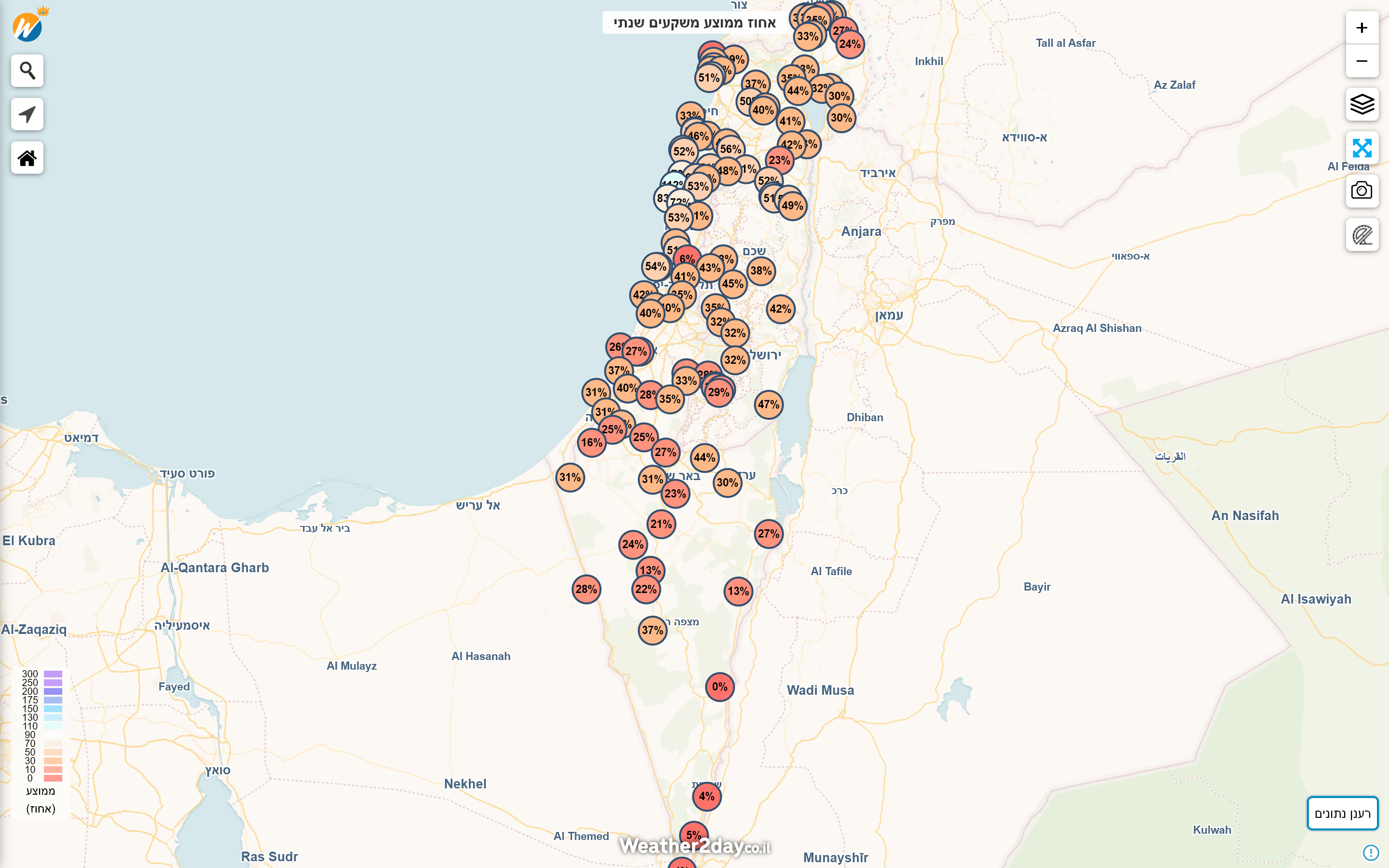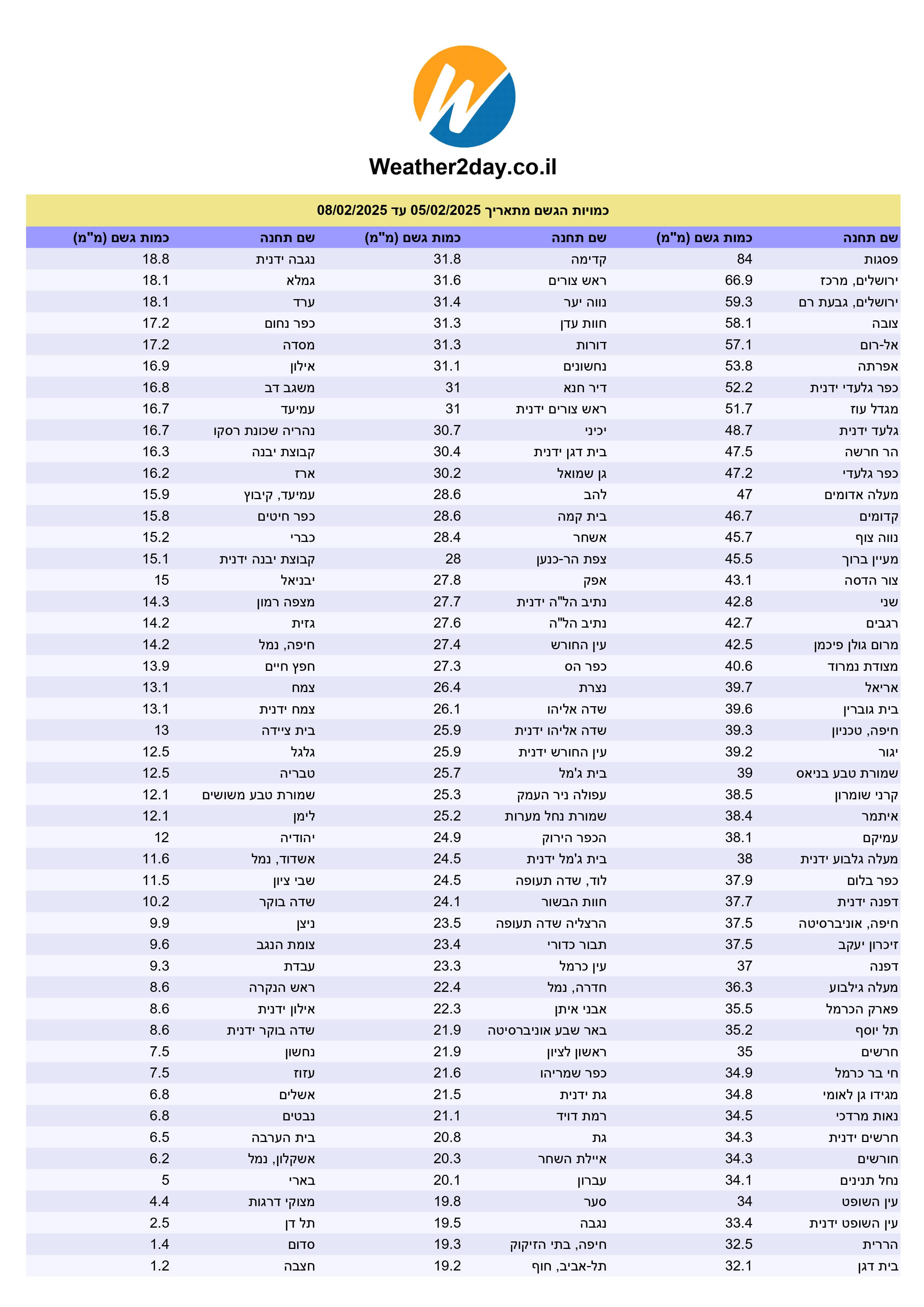 להלן סיכום כמויות המשקעים בעריכת האתר (הרשת המורחבת של האתר)