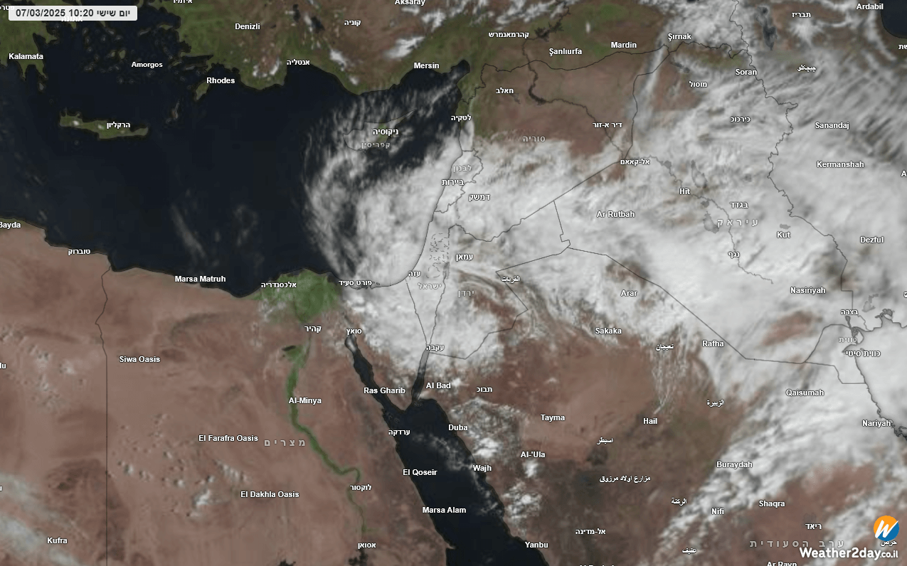 למעלה ניתן לראות את פלומת העננות המכסה את כל האזור שלנו, כאשר מערכת הגשם נעה מכיוון מזרח – בניגוד למערכת הרגילה שמגיעה בדרך כלל ממערב ומסתובב לכיוון דרום. במאסת העננות הזו נמצאים גם ענני הגשם הגורמים לשיטפונות במרחב הדרומי. לפחות עד לשעה זו, ניתן לומר שהשיטפונות נמצאים בשליטה ואינם דומים לאירועים משמעותיים אחרים. עם זאת, מדובר באירוע מסוכן המצדיק מעקב, שכן גם במהלך היום צפויים לרדת גשמים נוספים באזור זה.