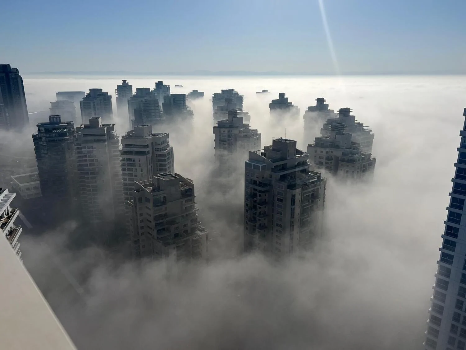 ערפל בנתניה באחד מימי השרב. צילום: נעם