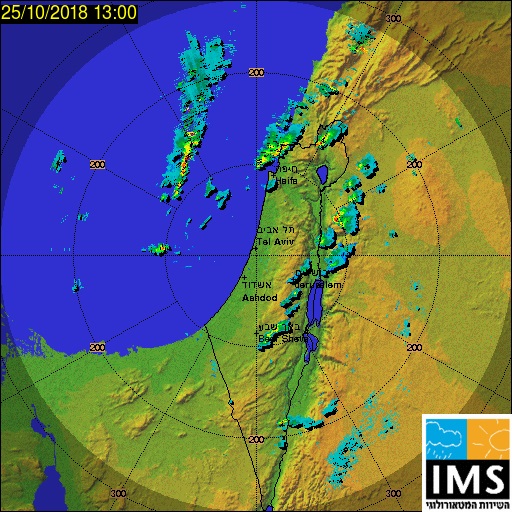 גשם וברד יורד בצפון הארץ מלווה בסופות רעמים עם רוחות ערות, בקו החוף הצפוני תאי עננים מפותחים שמאיימים בהצפות, בדרום הארץ - אובך ושיטפונות קלים באיזור נחל פארן. תחנת מזג האוויר של האתר בהר בנטל מדדה משב רוח של 117 קמ"ש, הגשם ימשך בשעות הקרובות עם הפוגות לפחות עד ליום שישי בצהריים.